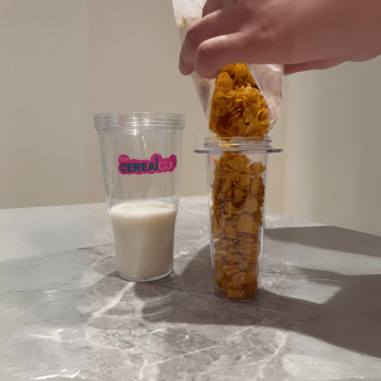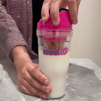 With The Cereal Cup®, your cereal stays crunchy and fresh. Just load cereal into the inner cup and milk into the outer cup. The cereal and milk don’t mix until you’re ready to dig in, so you get that perfect crunch every time.